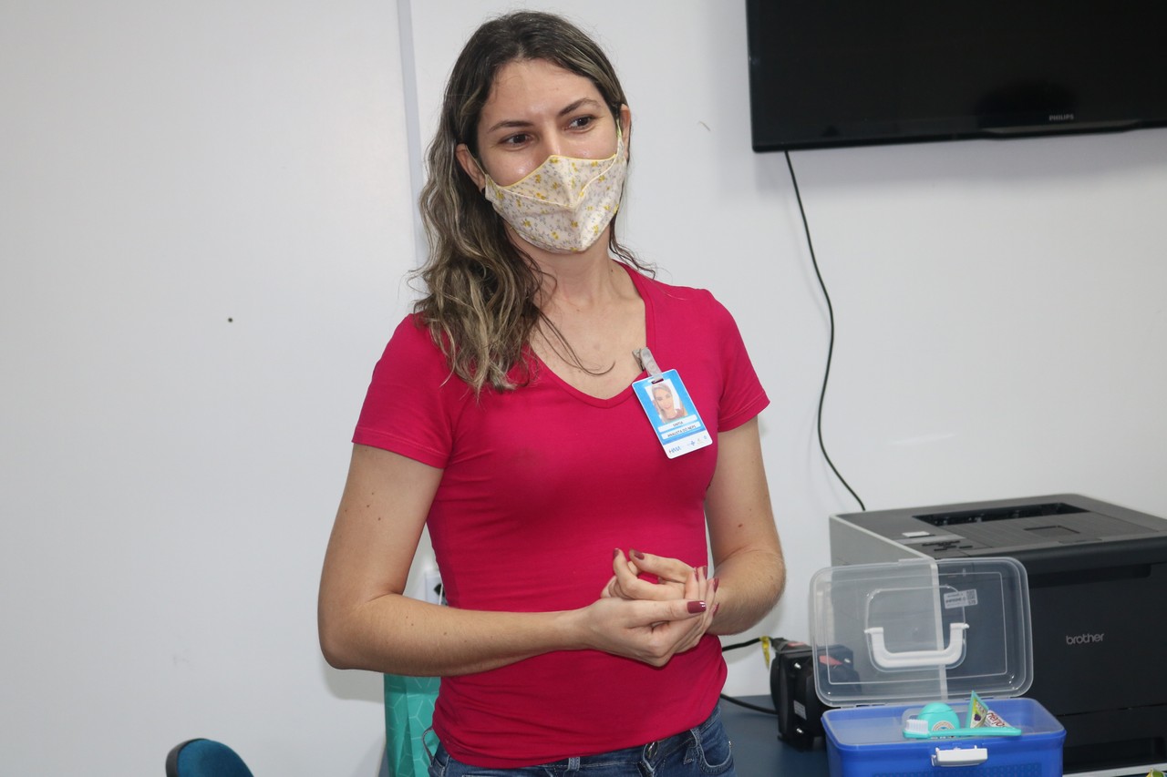 A odontóloga hospitalar, Marlei Pires, ensinou o passo a passo